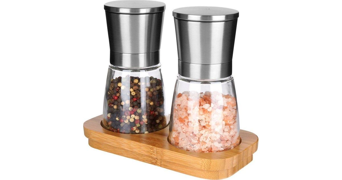 Orioni vürtsiveski. Veski soola ja pipra jahvatamiseks bambusest alusel, komplektis 3.