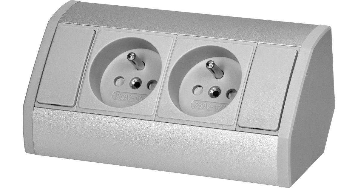 Orno Furniture pistikupesa 2x2P+Z, hall ja hõbedane - MT Shop