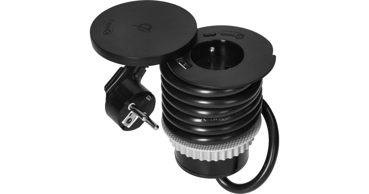 Orno Orno OR-GM-9028 mööblipesa O6cm pöörleva kaanega, induktiivne laadija, USB laadija ja 1,5m kaabel 1x2P+Z, Qi 1.2.4 max. 10W 2xUSB (tüüp A ja tüüp C, 2,4A) must