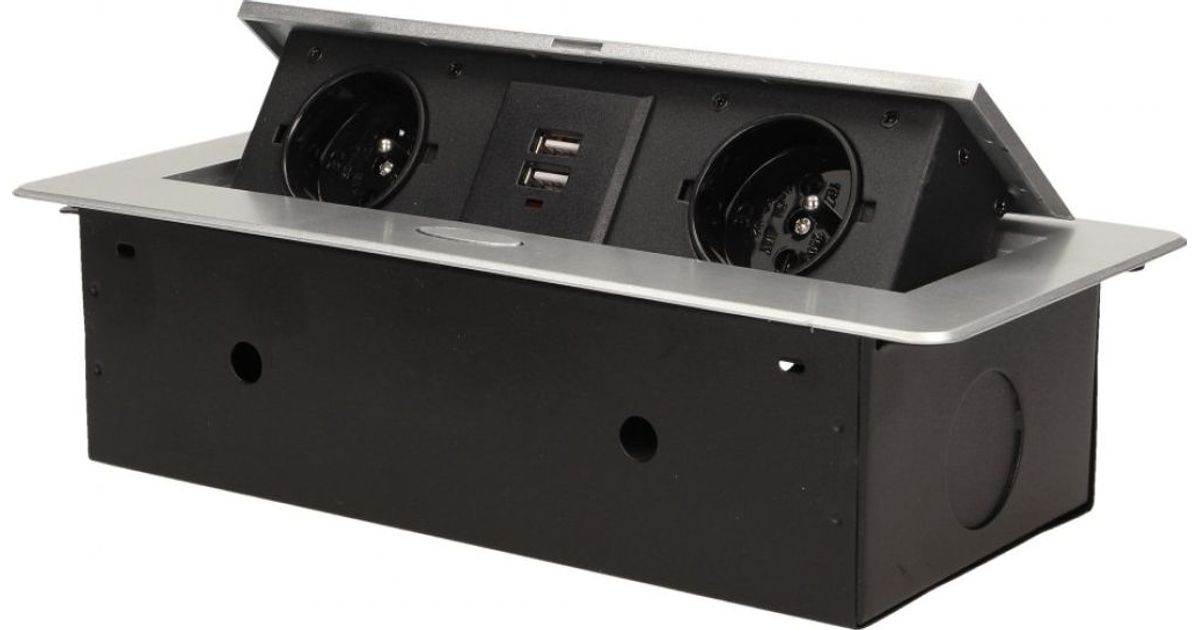 Orno Recessed furniture socket with a milled edge and a USB charger, 2x2P + Z, 2xUSB, silver