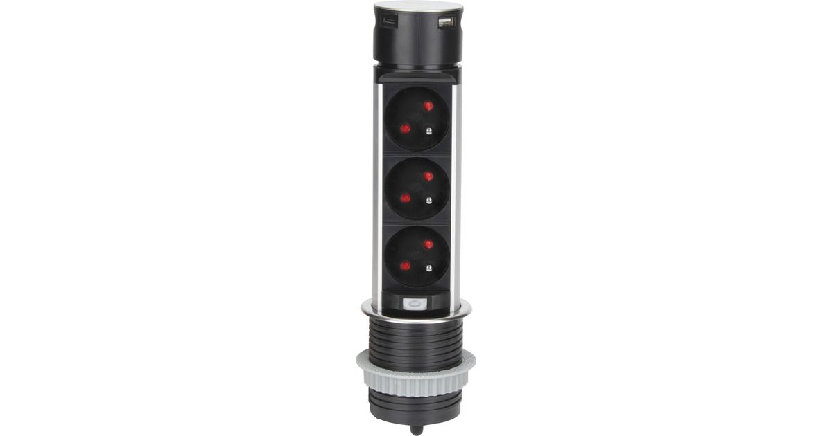 Orno Süvistatav mööblipesa ?6cm koos USB laadija ja 1,5m kaabliga, 3x2P+Z, 2xUSB (tüüp A ja tüüp C), INOX