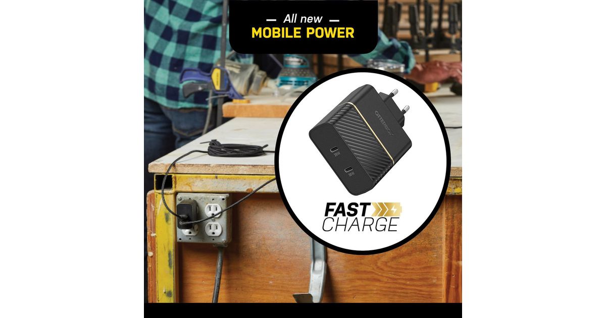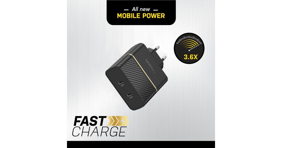 OtterBox Wand-Ladegerät 2 x USB-C 30W und 20W schwarz