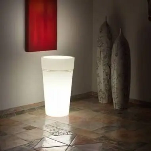 The pot Steam Outdoor by Teraplast is a round pot made of white plastic material. The line Luce is equipped with internal lighting that makes it a suggestive design element to furnish and enhance with a unique touch your garden, the entrance of a store, or a local. The material in which it is made is ecological, non-toxic and recyclable, it is very light, easy to move and shock-resistant. It is easily used in outdoor environments, totally waterproof. There is also a drainage hole that allows water to drain to the base of the pot, without running the risk of coming into contact with the electrical apparatus, which is isolated by a protective capsule. Resistant to UV rays and temperatures from -30°C to +60°C, it will not change color over time. The pot will also work as an atmosphere light body, without going unnoticed. To make the atmosphere more refined and elegant, and give a touch of light, we recommend purchasing separately the multicolor and white light for a great game of chromotherapy. The white light is already included in the luminous pots.