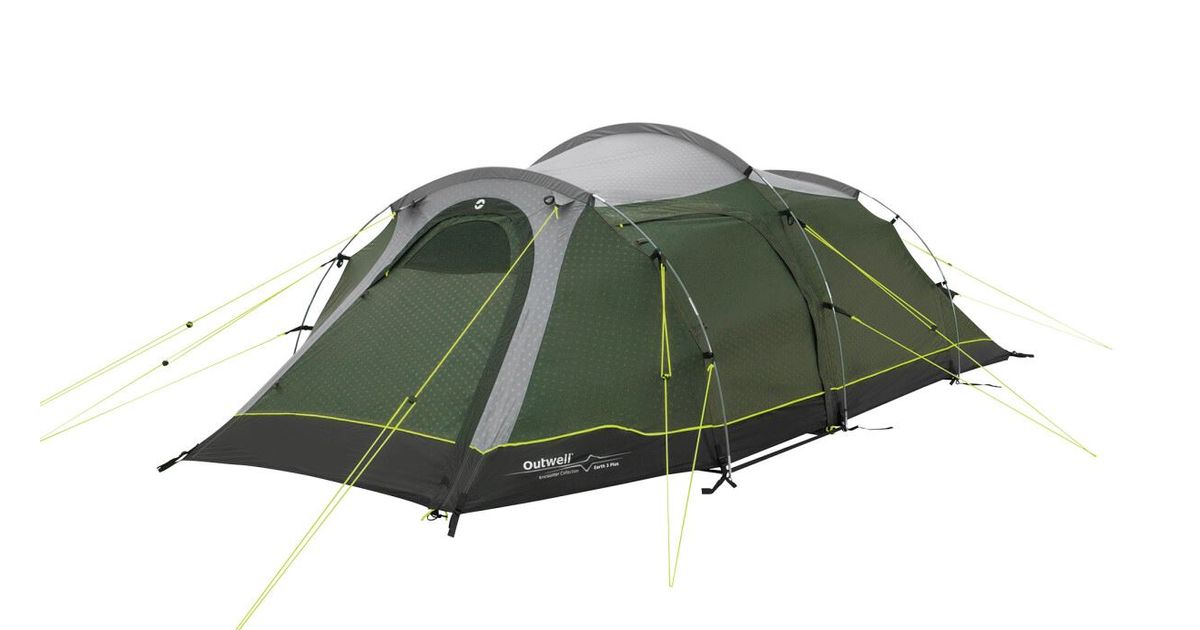 Outwell Two Room Tunnel Tent | Earth 3 Plus | 3 person(s) | Green