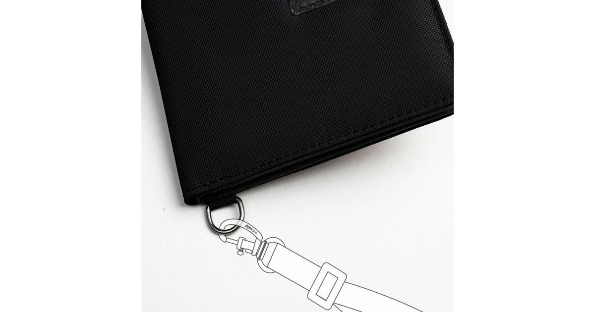 Sort your cards and cash in a slim wallet with RFID protection. This bifold wallet fits all currencies, has 3 credit cards slots plus an ID window. An attachment point for a cut-resistant strap (not included) allows for an added layer of protection. This product is made of 2 recycled plastic bottles.