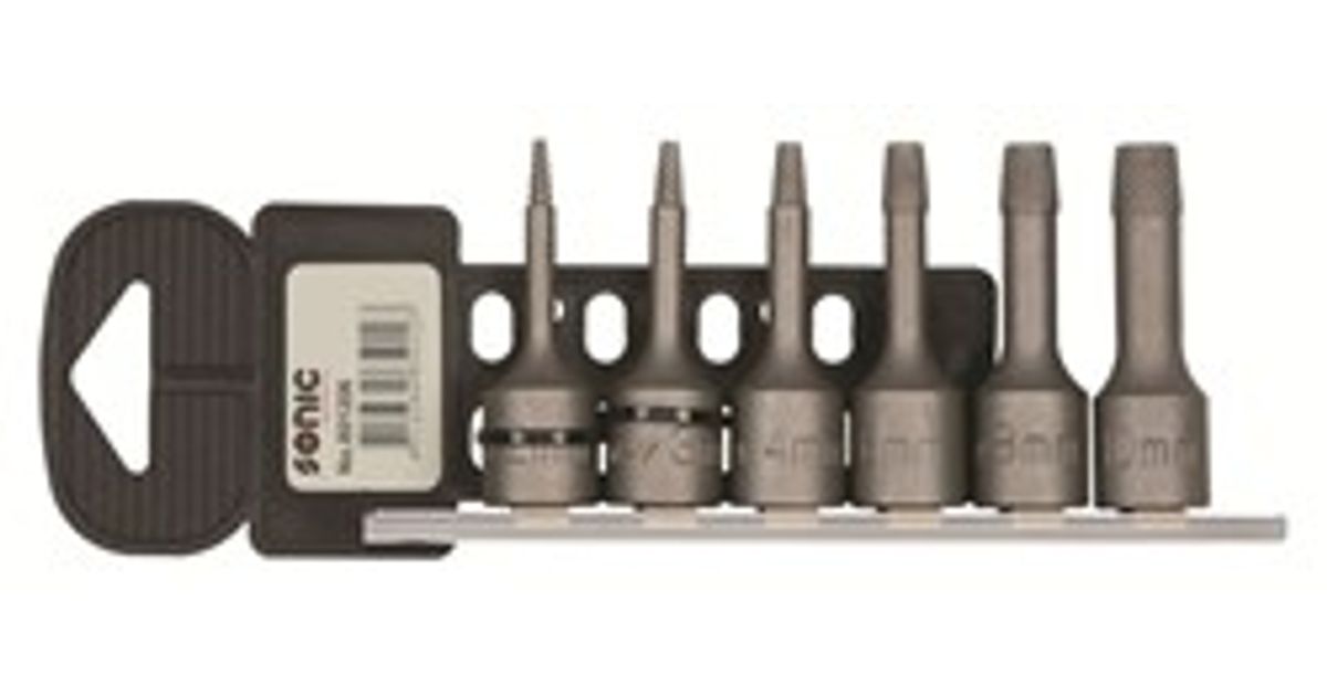 Padrunvõtmete komplekt 3/8" (ühetaoline), 6 tk, profiil: (en) spiral, narre mõõt: 3, 4, 6, 8, 10 mm, lahti keeramiseks kahjustatud poldid ja mutrid