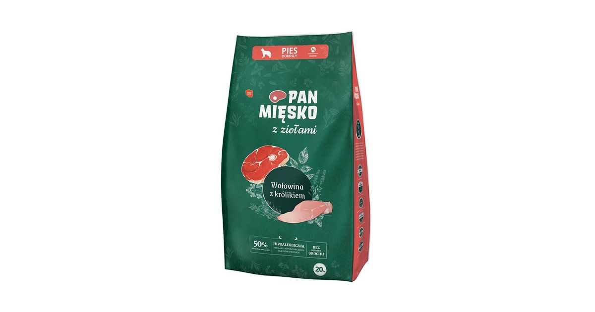 Pan Mięsko Z Ziołami Wołowina z królikiem (dorosły) chrupki M 20kg