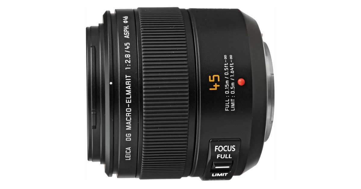 Panasonic Leica DG Macro-Elmarit 45 mm f/2.8 ASPH. MEGA O.I.S objektiiv mahutab väga palju väiksesse ruumi – 6,3 cm läbimõõdu juures sisaldab see sisseehitatud pildistabilisaatorit ning on võimeline pildistama objekte reaalsuuruses, üks ühele. Sobilik ka portreede pildistamiseks.