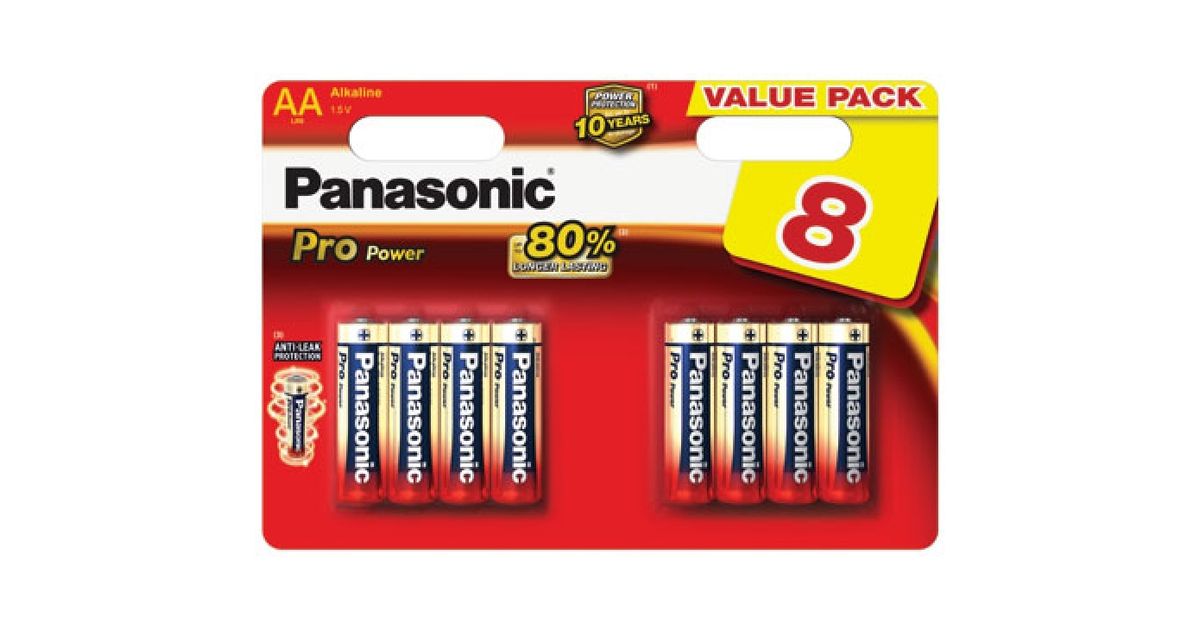 Panasonic Pro Power AA, Ühekordne patarei, AA, Aluseline, 1,5 V, 8 tk, Must, Kuld, Punane