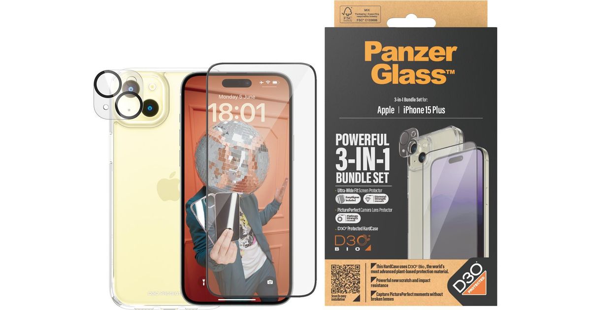 PanzerGlass ™ 3-in-1 Set iPhone 15 Plus - Apple - Apple - iPhone 15 Plus - Trockene Anwendung - Schockresistent - Transparent - 1 Stück(e) (B1174+2811)