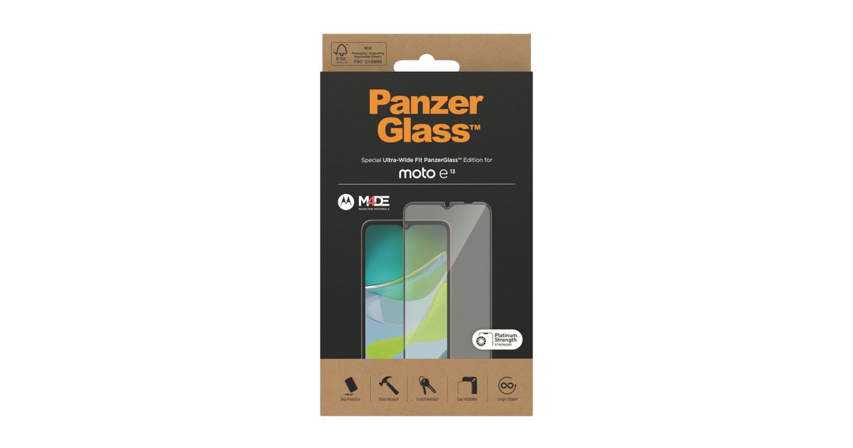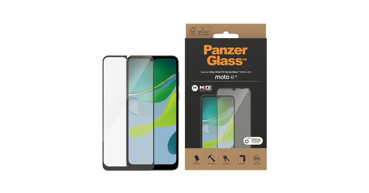 PanzerGlass 6576, Motorola, Motorola - moto e13, Kuiv pealekandmine, Kriimukindel, Löögikindel, Läbipaistev, 1 tk