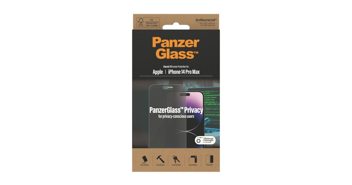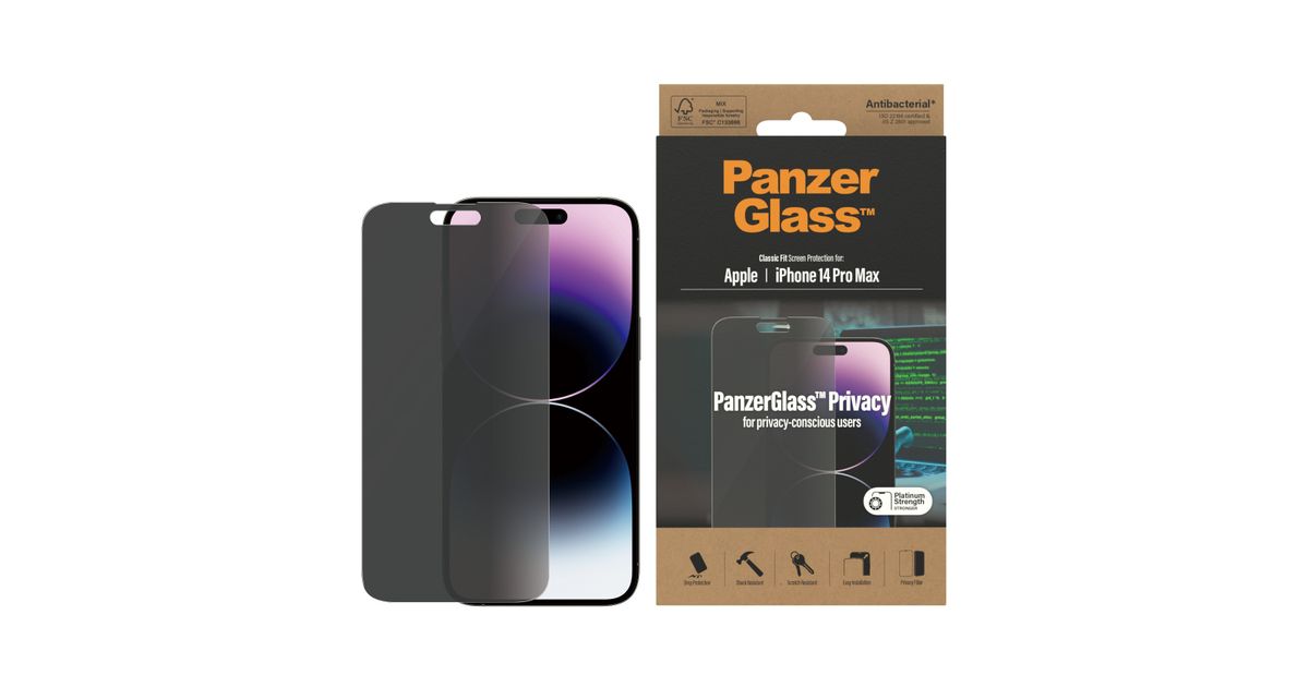 PanzerGlass Classic Fit Privacy Apple i, Apple, Apple - iPhone 14 Pro Max, Kuiv pealekandmine, Kriimukindel, Löögikindel, Antibakteriaalne, Läbipaistev, 1 tk