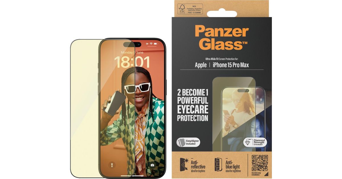 PanzerGlass Eyecare Screen Protection iPhone 2023 6.7 Pro Max | Ultra-Wide Fit w. EasyAligner