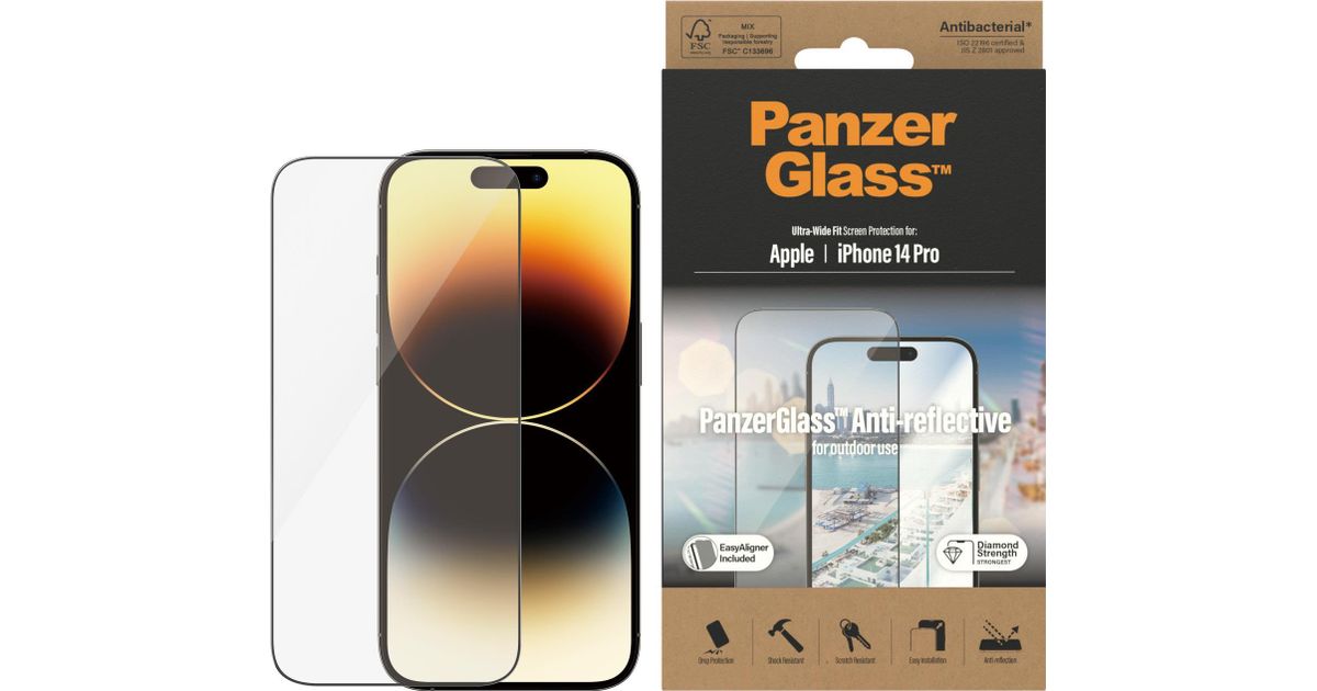 PanzerGlass Ultra-Wide Fit Apple iPhone, Apple, Apple - iPhone 14 Pro, Kriimukindel, Löögikindel, Antibakteriaalne, Läbipaistev, 1 tk