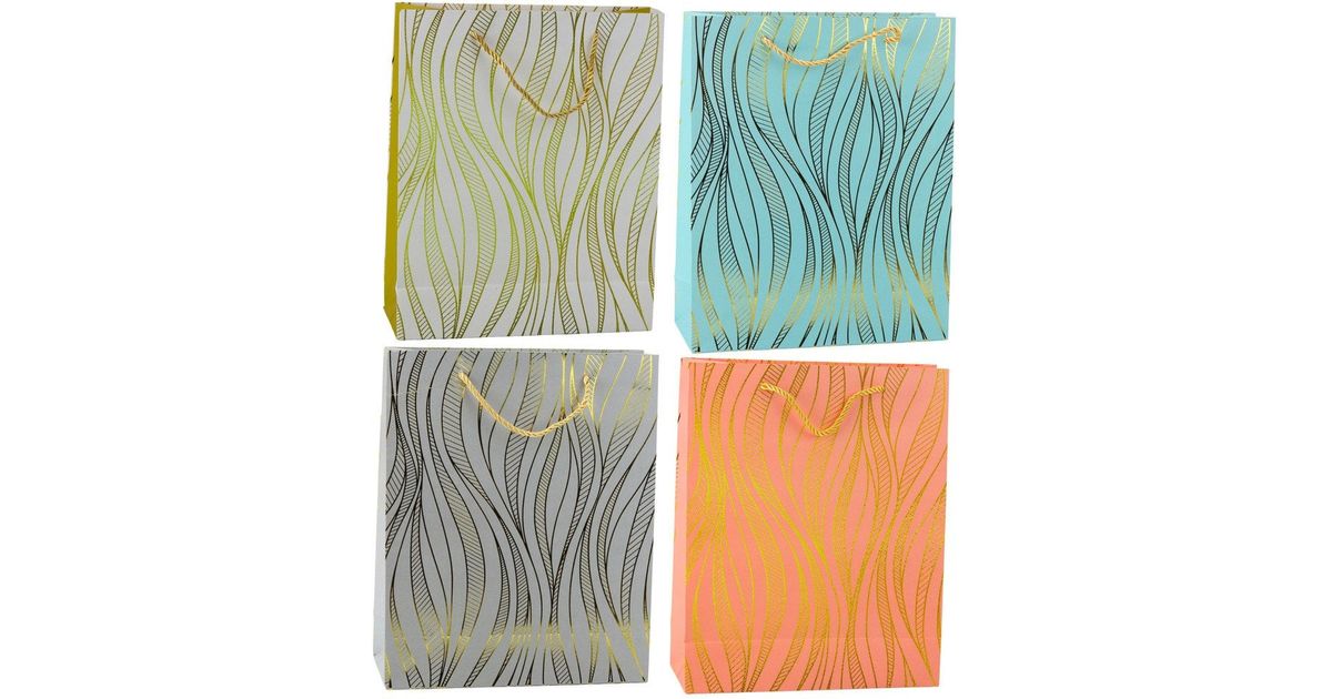Paper Gift Bag Wavy Lines Gold 32 x 26 x 12 cm