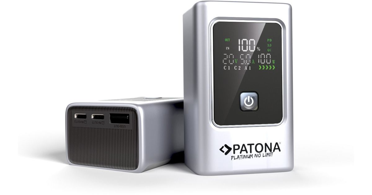 PATONA Platinum Powerbank Luxury One PD35 | 10000mAh | PD 35W | USB-C + USB-A Silver, Black