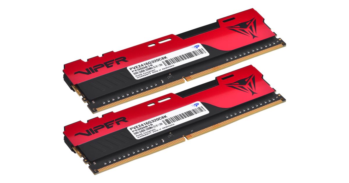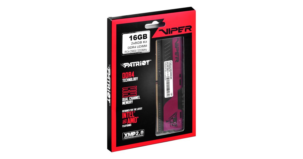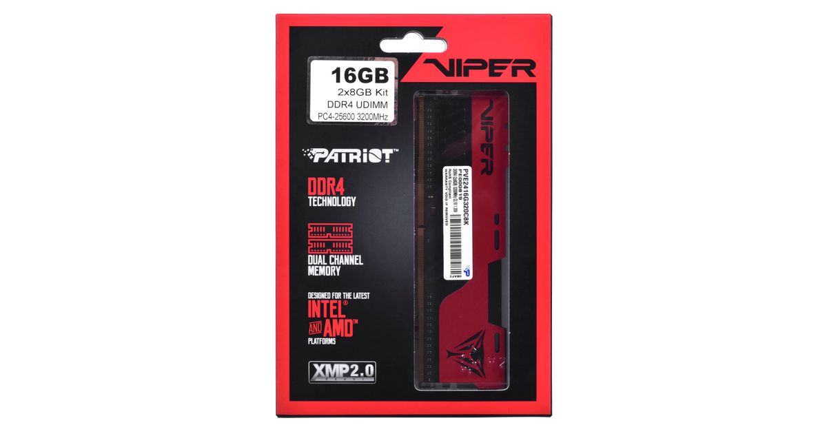 Patriot Memory PVE2416G320C8K, 16 GB, 2 x 8 GB, DDR4, 3200 MHz, 288-pin DIMM