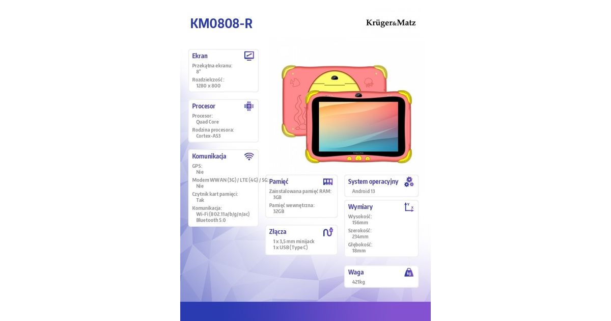 PC Tab for kids Kruger & Matz FUN 808 red