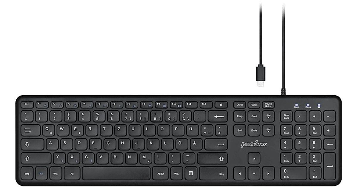 Perixx Perixx PERIBOARD-210 klaviatuur, DE, USB-C, juhtmega, vaiksed klahvid, must (saksa paigutus)