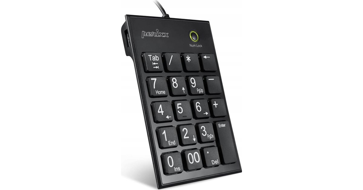 Perixx Perixx PERIPAD-202 H, USB numbriklahv 2-pordilise jaoturiga, must
