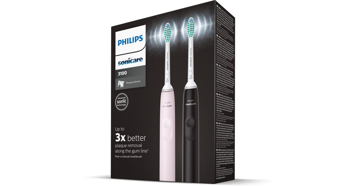Philips 3000 series Sonic tehnoloogia, elektriline Sonic hambahari, Täiskasvanud, Sonic-tehnoloogiaga hambahari, Igapäevane hooldus, 31000 liigutust minutis, Must, Roosa, 2 min