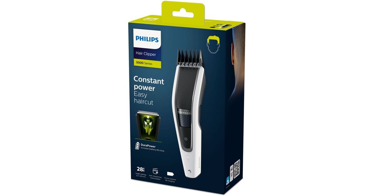 Philips 5000 series Trim-n-Flow PRO tehnoloogia Pestav juukselõikur, Must, Valge, 0,5 mm, 2,8 cm, 4,1 cm, Roostevaba teras, Elektritoide/akutoide