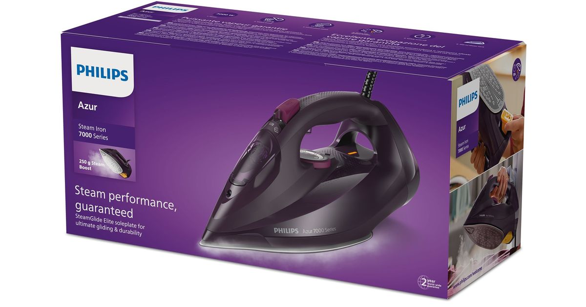 Philips 7000 series DST7061/30 HV aurutriikraud, tumelilla maagia, Aurutriikraud, SteamGlide Elite alusplaat, 2 m, 250 g/min, Lilla, 55 g/min