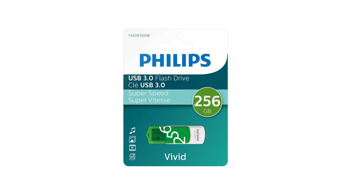 Philips FM25FD00B/00 USB-välkmälu 256 GB USB tüüp A 3.2 Gen 1 (3.1 Gen 1) Roheline, Valge