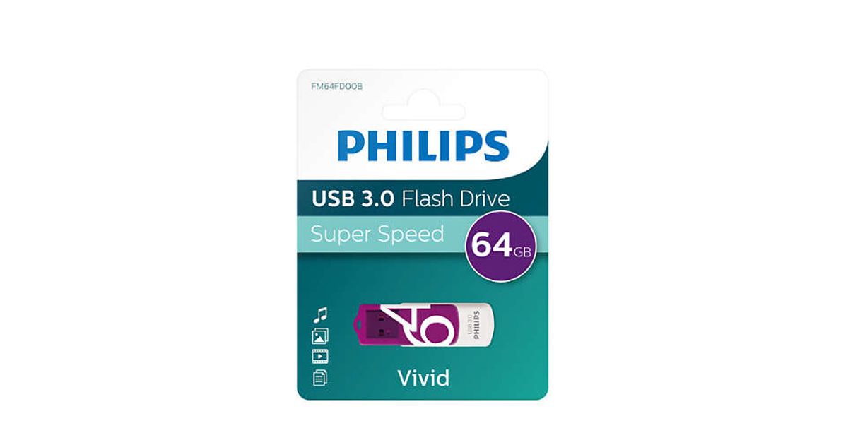 Philips FM64FD00B, 64 GB, USB tüüp A, 3.2 Gen 1 (3.1 Gen 1), Pöörleva liigendiga, 8 g, Lilla, Valge