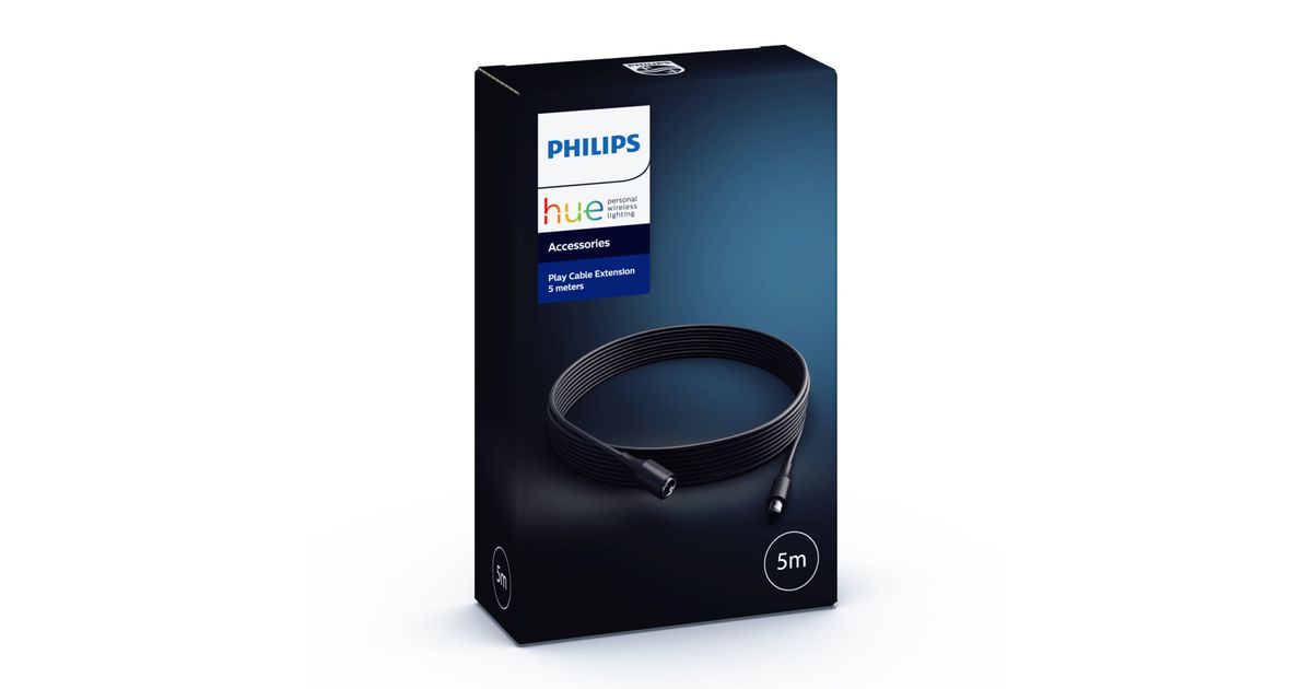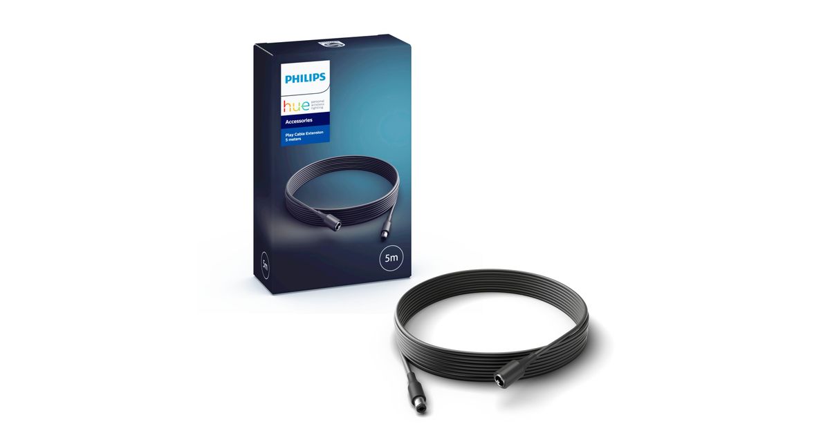 Hue Play pikendusjuhet saab kasutada toiteallika ja Hue Play valgustite vahelise maa pikendamiseks või valgustite vahelise maa pikendamiseks. Maksimaalne süsteemi pikkus lambi kohta on 7 meetrit.