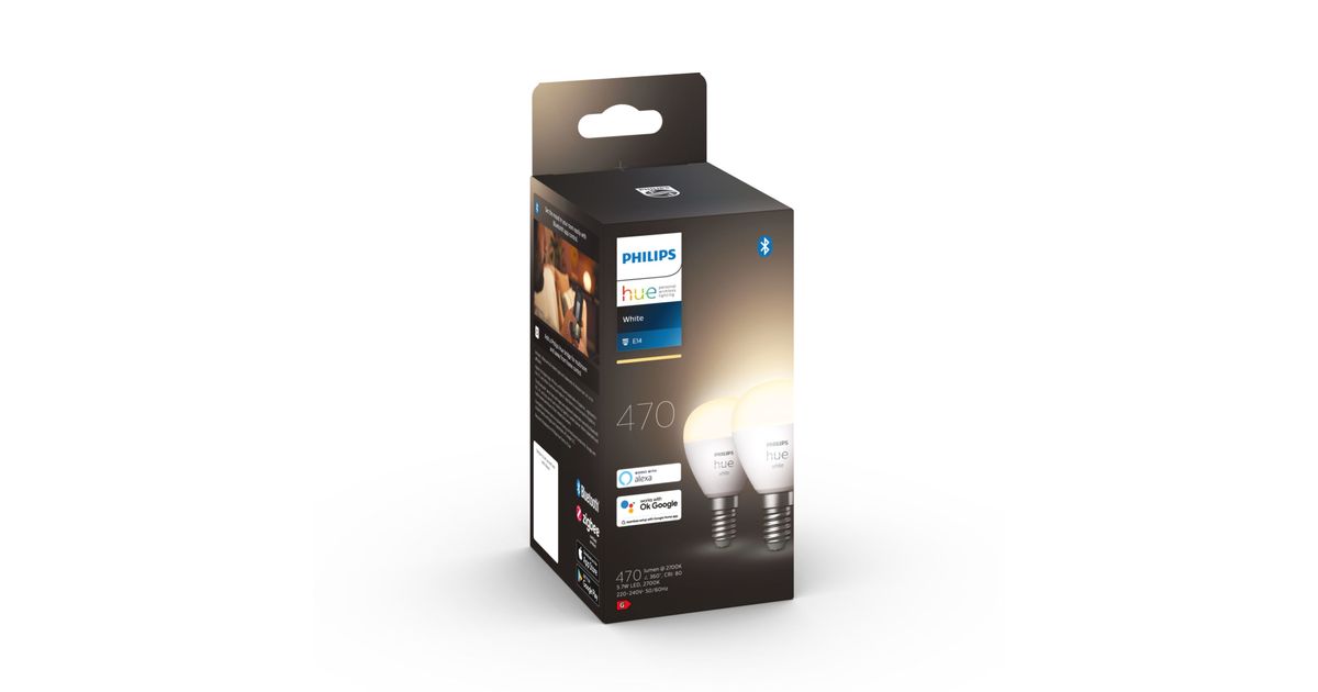 Philips Hue White Kahene komplekt läikiv P45 E14, Nutipirn, Valge, Bluetooth/Zigbee, Integreeritud LED, E14, Pehme valge