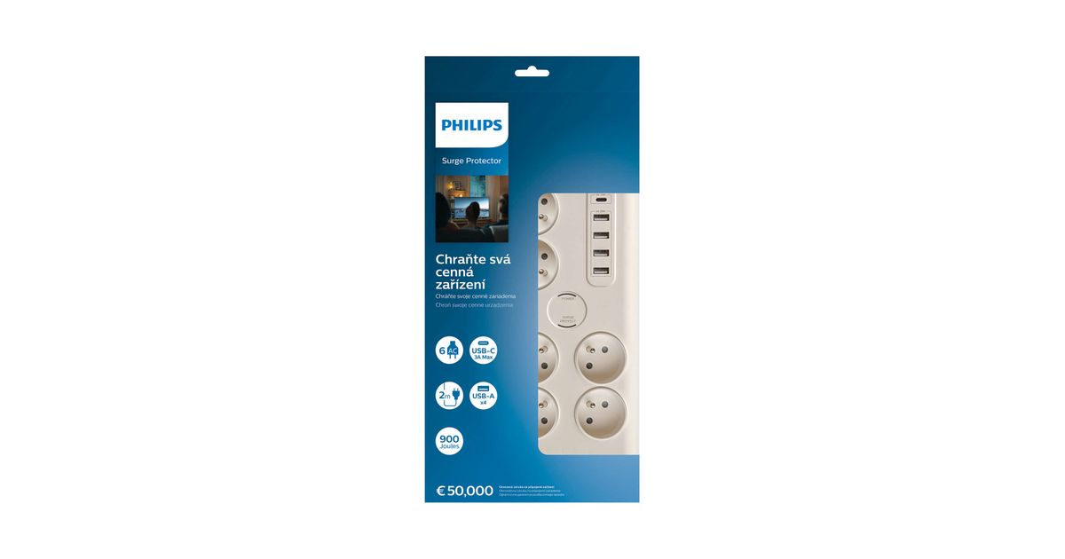 Philips SPN7060WA/60 liigpinge kaitsevahend Valge 6 vahelduvvoolu kontakt 2 m