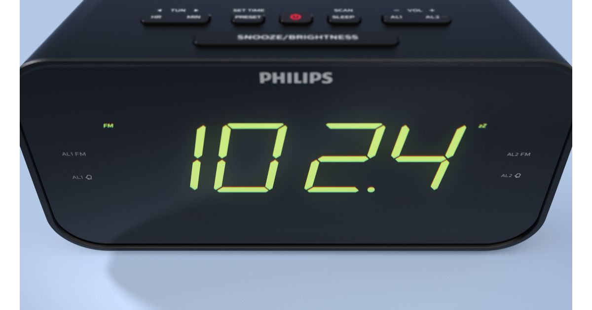 Philips TAR3306/12, Digitaalne äratuskell, Nelinurk, Must, FM, 87,5 - 108 MHz, Hiina