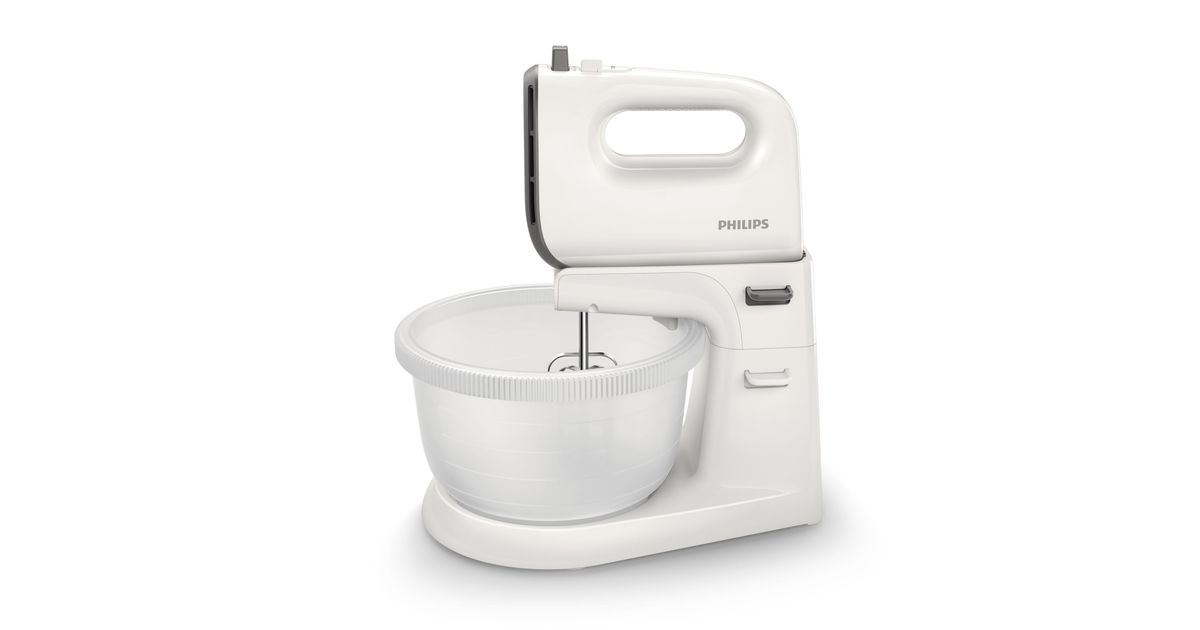 Philips Viva Collection 450 W 5 kiiruse ja turboga 3 l automaatse nõuga mikser, Alusega mikser, Hall, Valge, 1,2 m, 3 l, Hiina, Hall