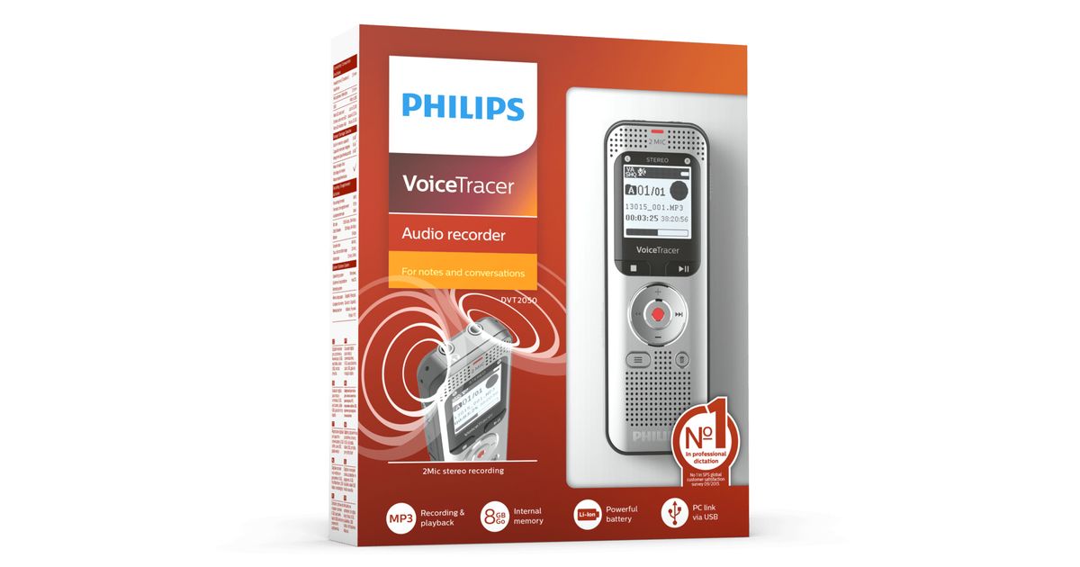 Philips Voice Tracer DVT2050/00, 50 h, Stereo (ST), MP3, WAV, 16 Ω, 8 - 128 Kbit/s, LCD