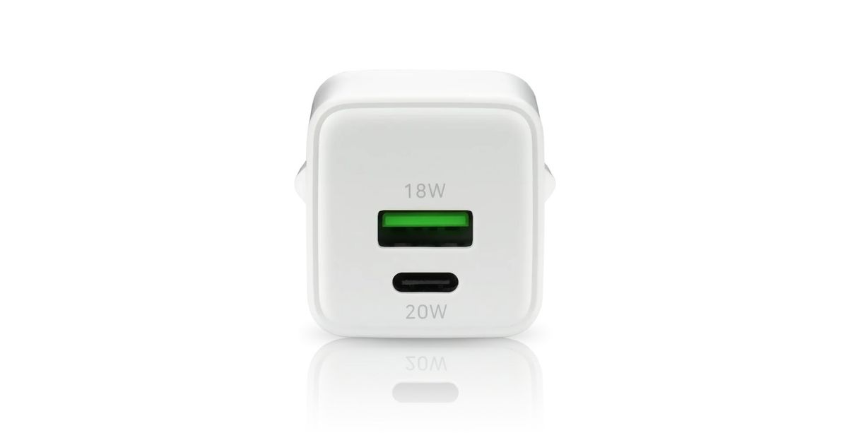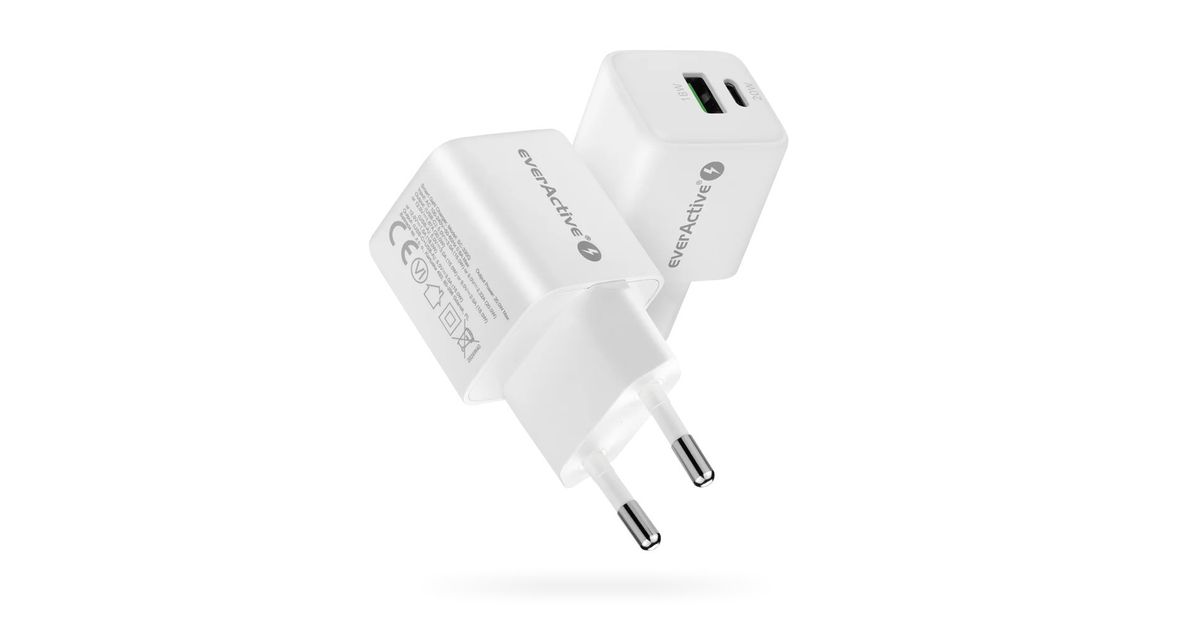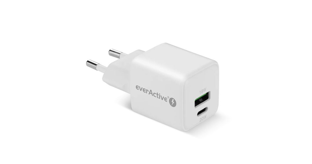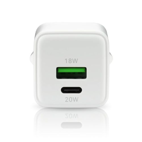 PHONE CHARGER GAN 1X US B, 1X USB-C 20W WHITE