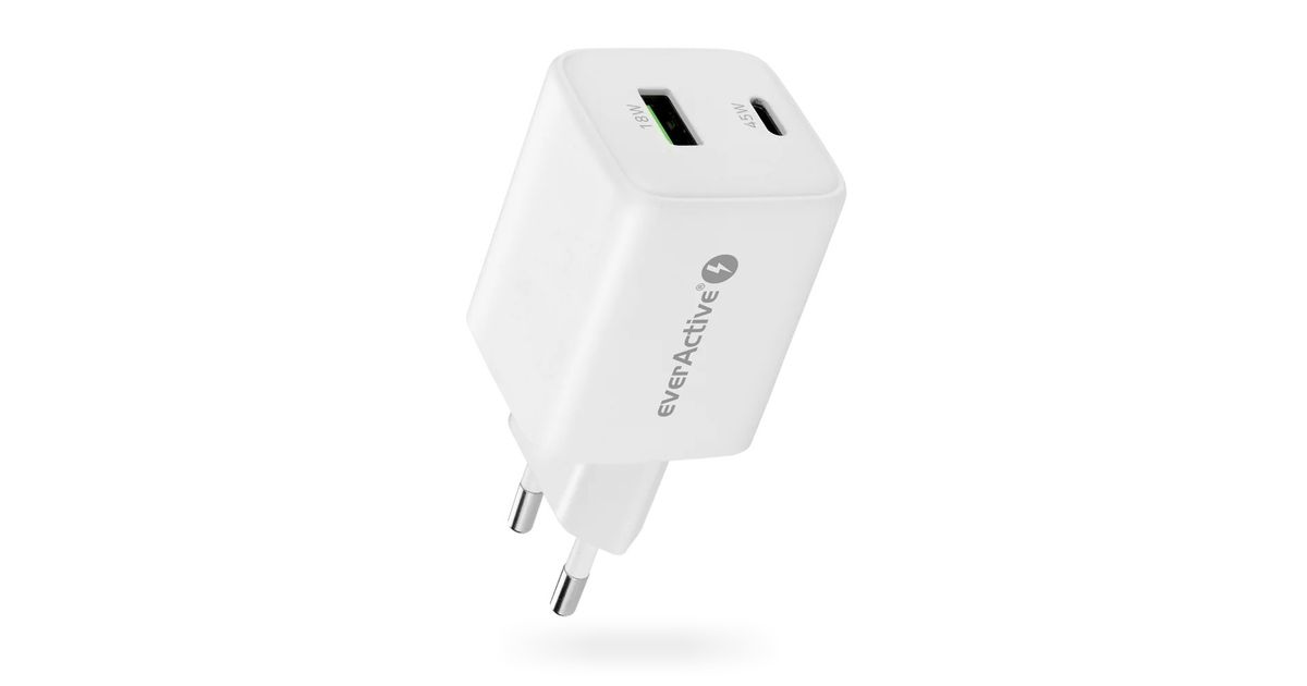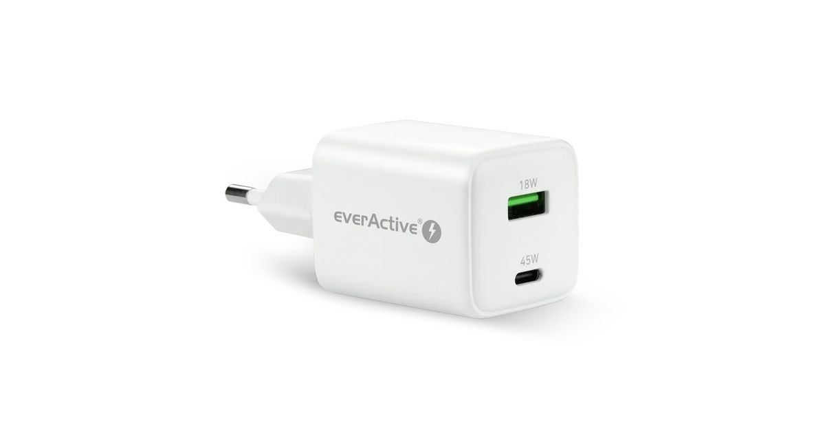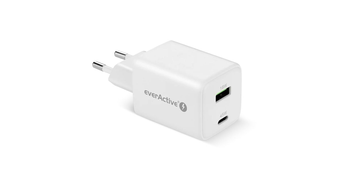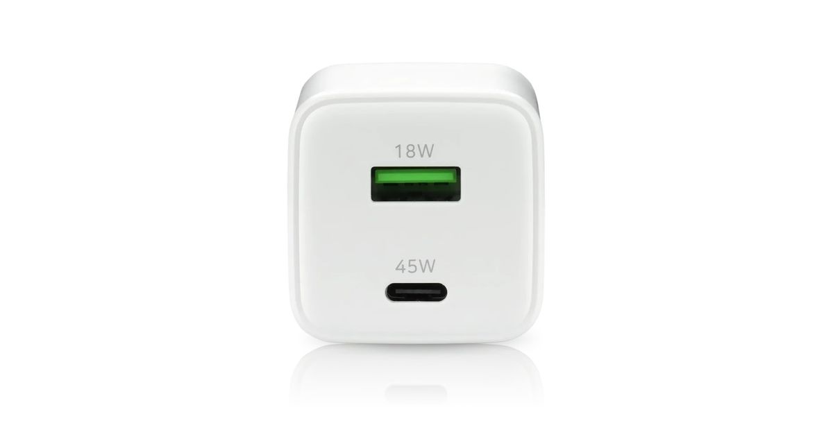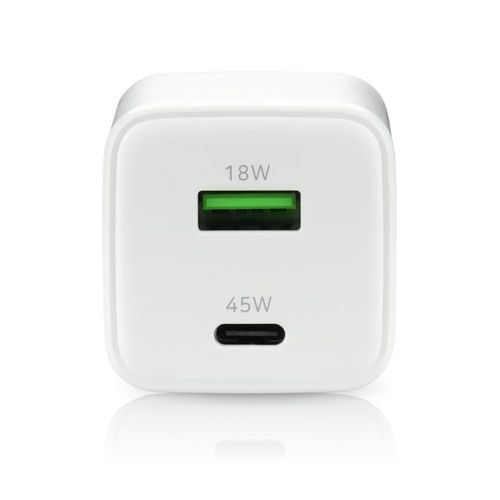 PHONE CHARGER GAN 1X US B, 1X USB-C 45W WHITE