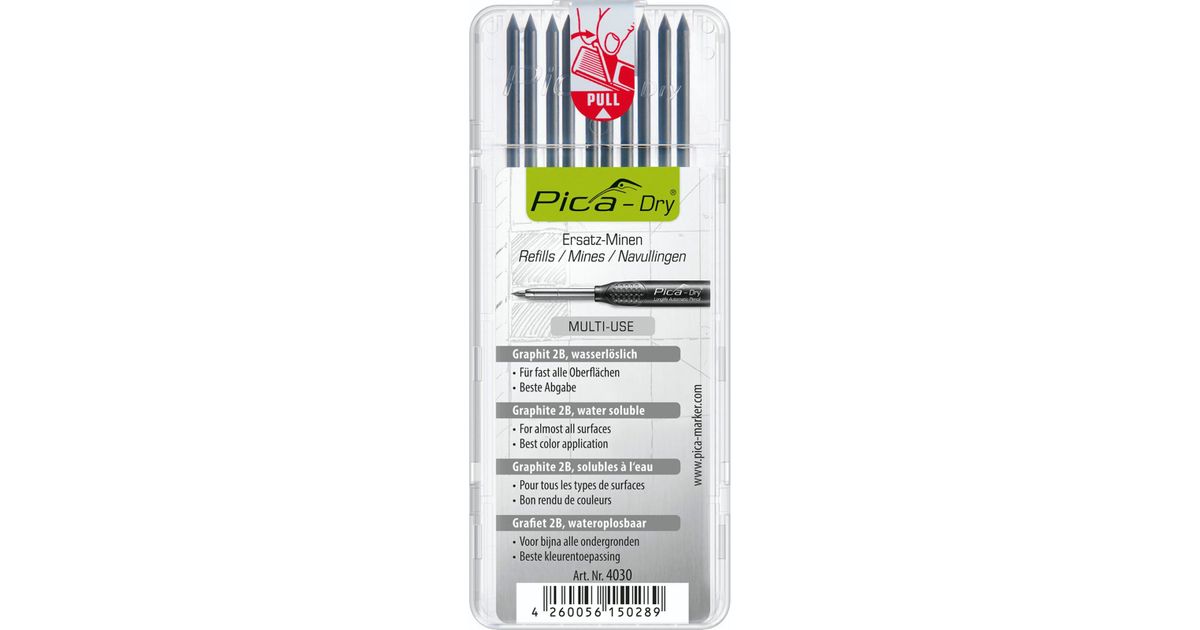 4030 Pica DRY Refill Set (10 pieces, graphite 2B), water soluble
