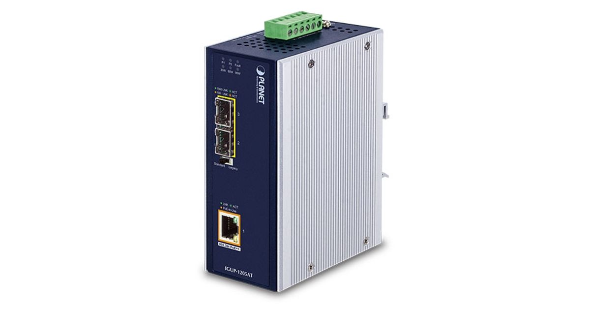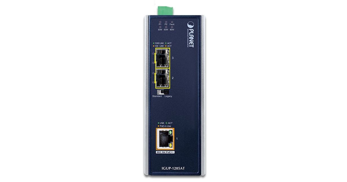 PLANET IGUP-1205AT, 1000 Mbit/s, 10Base-T,100Base-T,1000Base-T, 1000Base-BX,1000Base-LX,1000Base-SX, IEEE 802.3,IEEE 802.3ab,IEEE 802.3af,IEEE 802.3at,IEEE 802.3az,IEEE 802.3bt,IEEE 802.3u,IEEE..., Gigabit Ethernet, 10,100,1000 Mbit/s