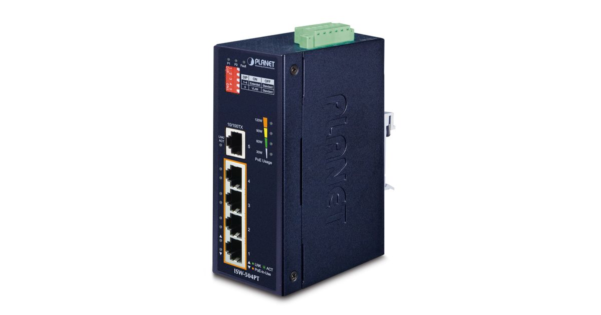 PLANET (ISW-504PT) PLANET ISW-504PT network switch Unmanaged L2 Fast Ethernet (10/100) Power over Ethernet (PoE) Black