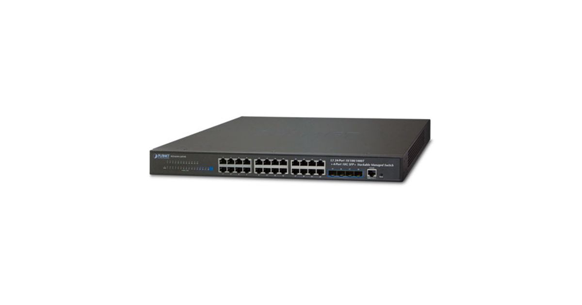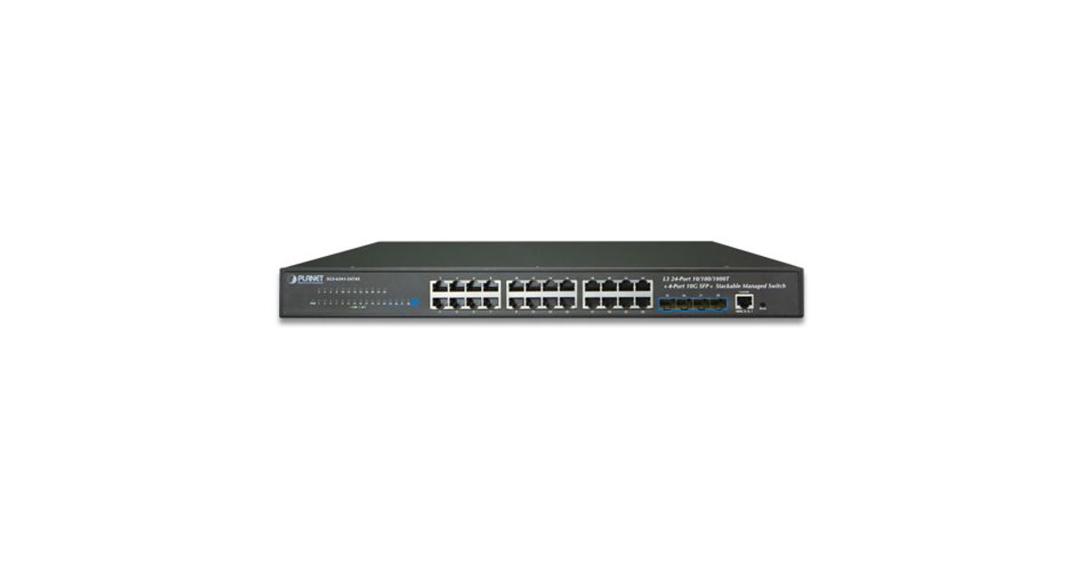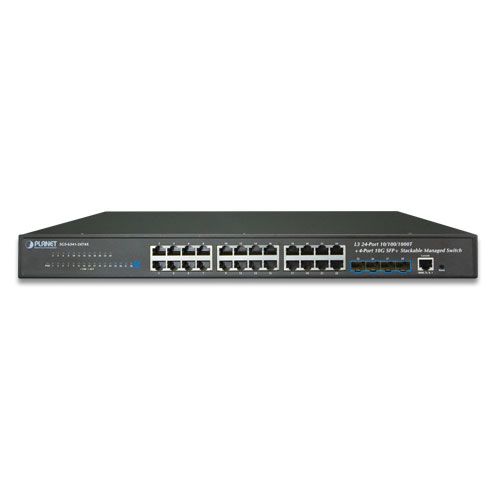 PLANET SGS-6341-24T4X is a Layer 3 Stackable Managed Gigabit Switch that provides high-density performance, Layer 3 static routing, RIP (Routing Information Protocol) and OSPF (Open Shortest Path First) with 10Gbps uplink interfaces delivered in a rugged, strong case.