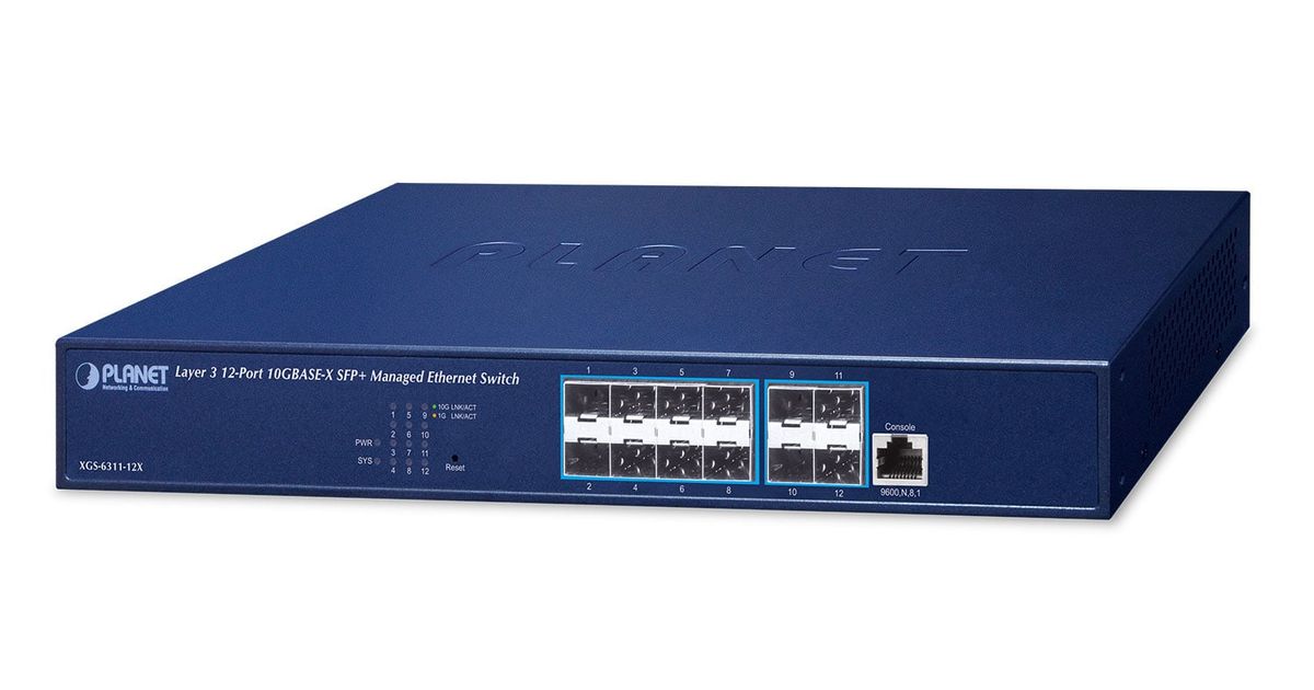 Planet XGS-6311-12X Layer 3 12-Port 10GBASE-X SFP+ Managed Ethernet Switch (Hardware-based Layer 3 RIPv1/v2, OSPFv2 dynamic routing, supports ERPS Ring, supports 1000X SFP and 10G