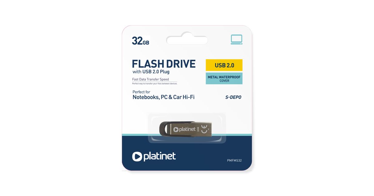 Platinet PMFMS32 USB-välkmälu 32 GB USB tüüp A 2.0 Must, Hõbe