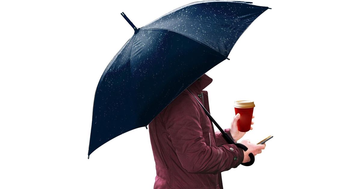 Praktilisel Platinet vihmavarjul on kummeeritud C-kujuline käepide, mis võimaldab mugavalt telefoni kasutada.