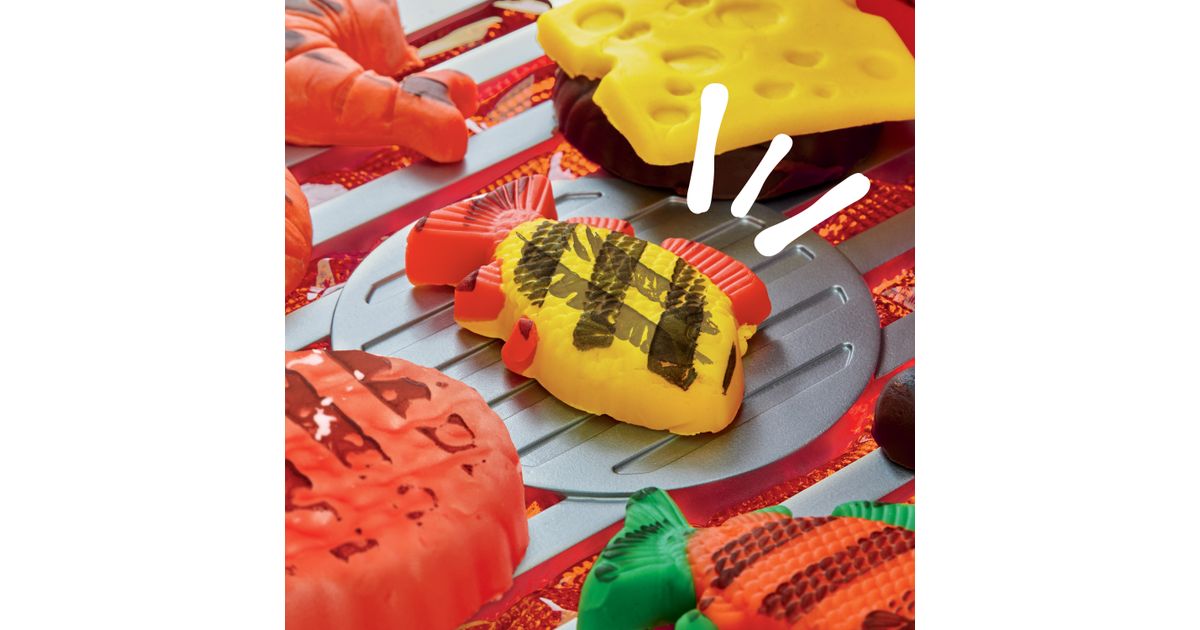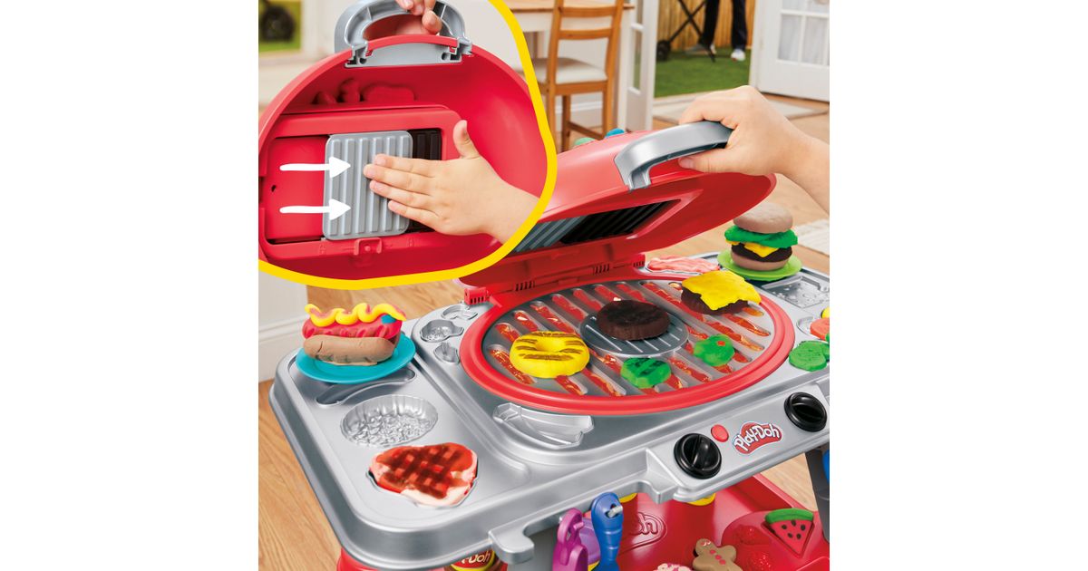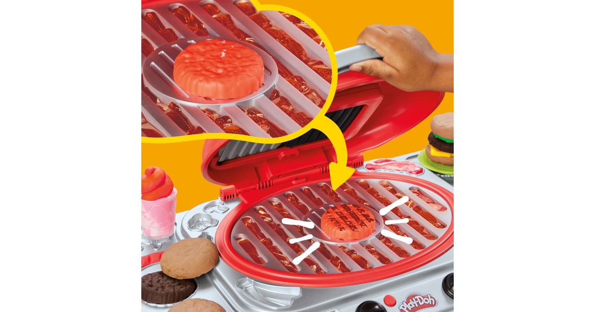 Play-Doh särisev Grill toob mängulise BBQ elamuse otse laste tuppa! Grillil on helendavad tuled, praksuvad helid ja templipadi, mis jätab Play-Doh toitudele lõbusad grillmärgid. Tee kujuteldav toit, aseta see grillile, sulge kaas ja ava – näed realistlikku grillitud välimust. Komplektis on 17 tarvikut (nt burgeri- ja hot-dogivormid, spaatel, tangid) ning 10 värvilist Play-Doh purki, mis annavad mänguks lõputult võimalusi.