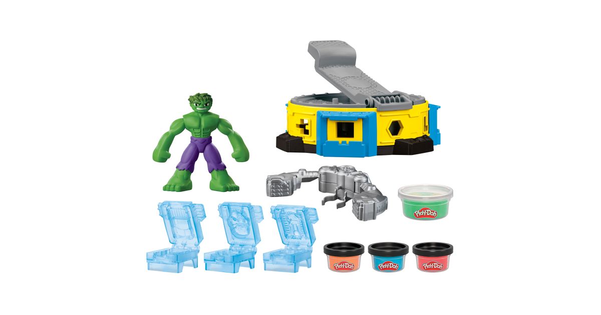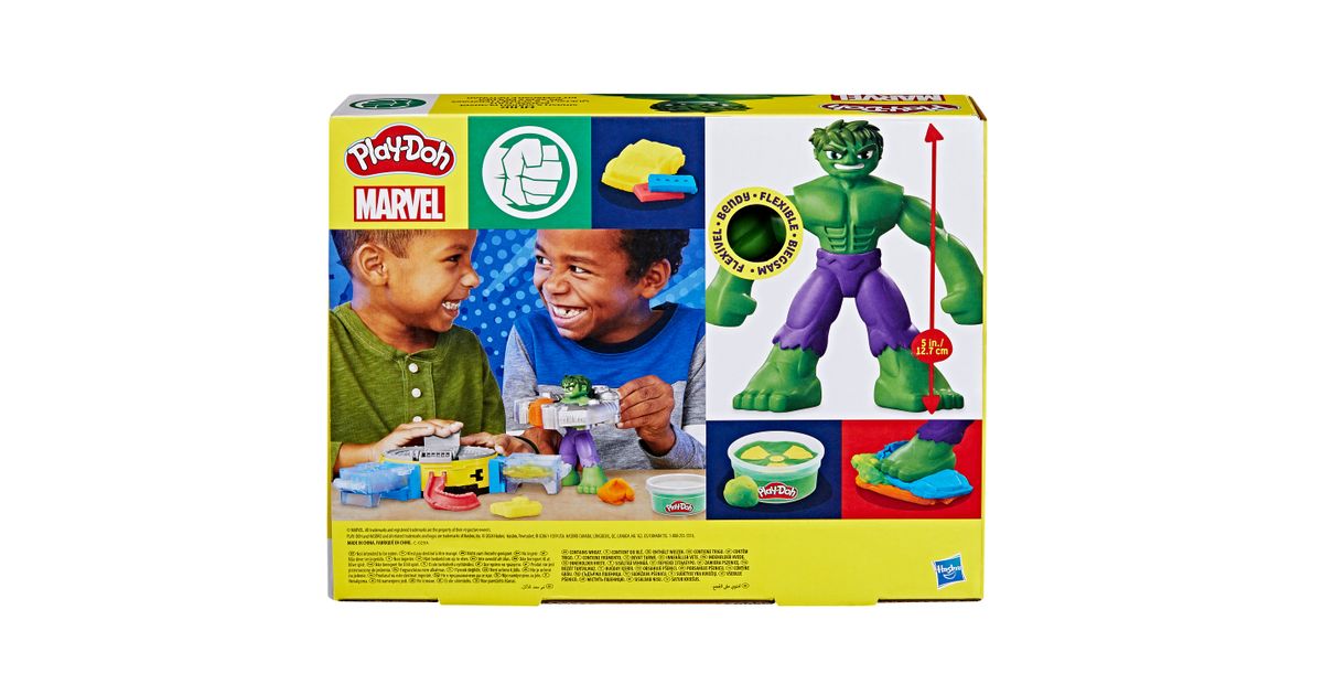 See Play-Doh Marvel Hulk Smash & Squish mängukomplekt sisaldab painduvat, 12,7 cm pikkust Hulki tegevusfiguuri ja vingeid Play-Doh tarvikuid ning 142 g modelleerimismassi.
