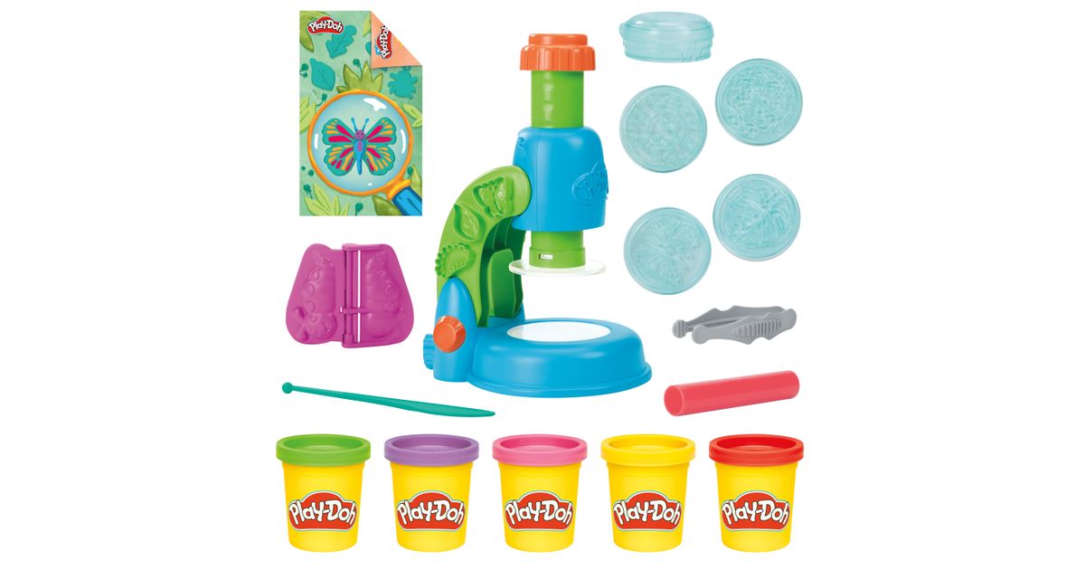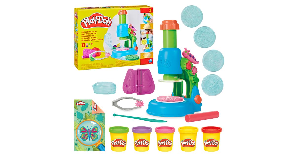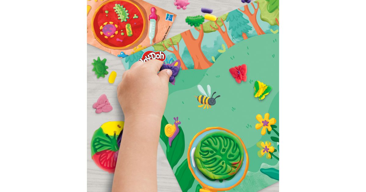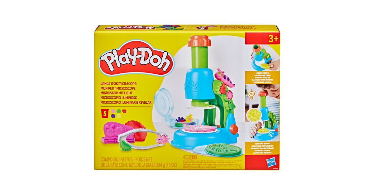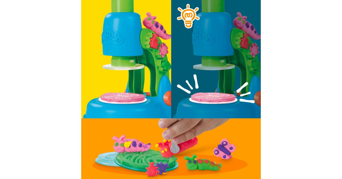 Play-Doh helendava mikroskoobi komplektiga särab põnevus ja kujutlusvõime erksates värvides! Särav mikroskoop annab helendava efekti Play-Doh loomingule, mida lapsed saavad luua 4 läbipaistval slaidil. Lihtsalt vali slaid, täida see materjaliga ja vajuta mikroskoopi, et looming kinnitada ja aktiveerida WOW-efekt! Vormi Play-Doh voolimismassist värvilisi taimi, putukaid ja mikroobe, et uurida nenid Petri tassis. Loodusteemaline mängumatt, 2 tegevuskaarti ja 5 purki voolimismassi inspireerivad lapsi mängima ja looma.