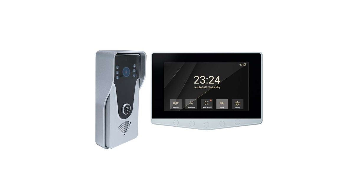 PNI DF780 video sisetelefon 1 monitoriga, 7-tolline 1080p puuteekraan, kaardipesa, IP65 toetab 4 monitori, 2 välisseadme ja 2 CCTV kaamera jadaühendust