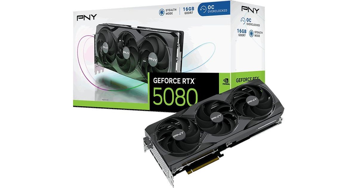 PNY GeForce RTX 5080 Overclocked Triple Fan GPU NVIDIA 16 GB GDDR7
