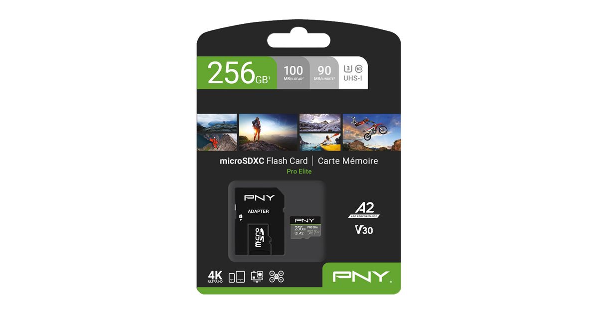 PNY P-SDU256V32100PRO-GE, 256 GB, MicroSDXC, Klass 10, UHS-I, 100 MB/s, 90 MB/s